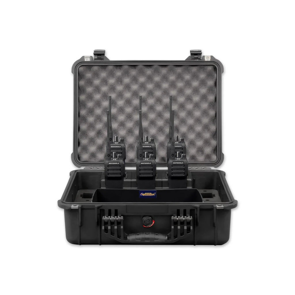 Take your communication system further with our custom‑engineered Rapid Deployment Pack. Housed in a rugged Pelican case that is crushproof, waterproof, and drop-proof, this pack offers unmatched protection and long-term investment for your radios. Built to withstand harsh conditions, it ensures your equipment remains secure, organised, and fully operational whenever duty calls.